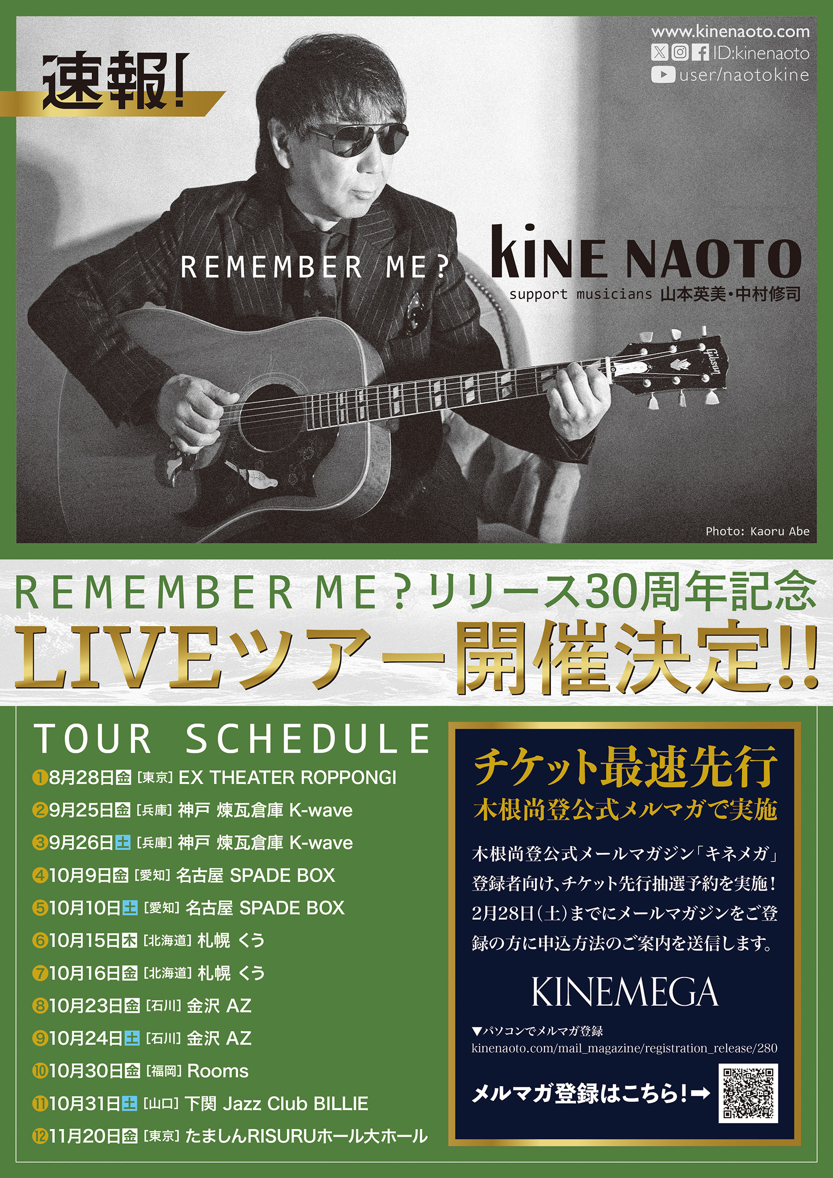 木根尚登『REMEMBER ME?』発売30周年記念コンサートツアー開催決定!